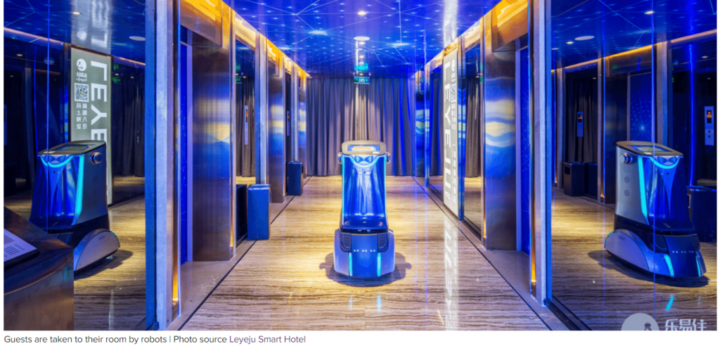 Komentarz: w Pekinie otwarto smart hotel Leyeju, który – głównie dzięki wykorzystaniu IoT oraz AI – zapewnia niemal w pełni zautomatyzowaną i „bezkontaktową” obsługę. Zatrudnia tylko 2 osoby. Czyżby tak miała wyglądać „pocovidowa” przyszłość branży turystycznej? Dla mnie, choć jestem introwertykiem i „średnio” potrzebuję na co dzień towarzystwa, ta wizja jest nieco przerażająca.