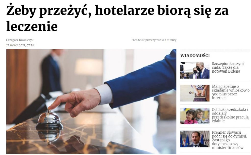 - „Żeby przeżyć, hotelarze biorą się za leczenie” – Grzegorz Kowalczyk, Dziennik Gazeta Prawna.