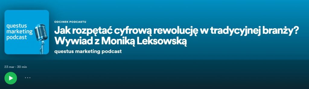 - „Jak rozpętać cyfrową rewolucję w tradycyjnej branży?” – wywiad z Moniką Leksowską; Questus.