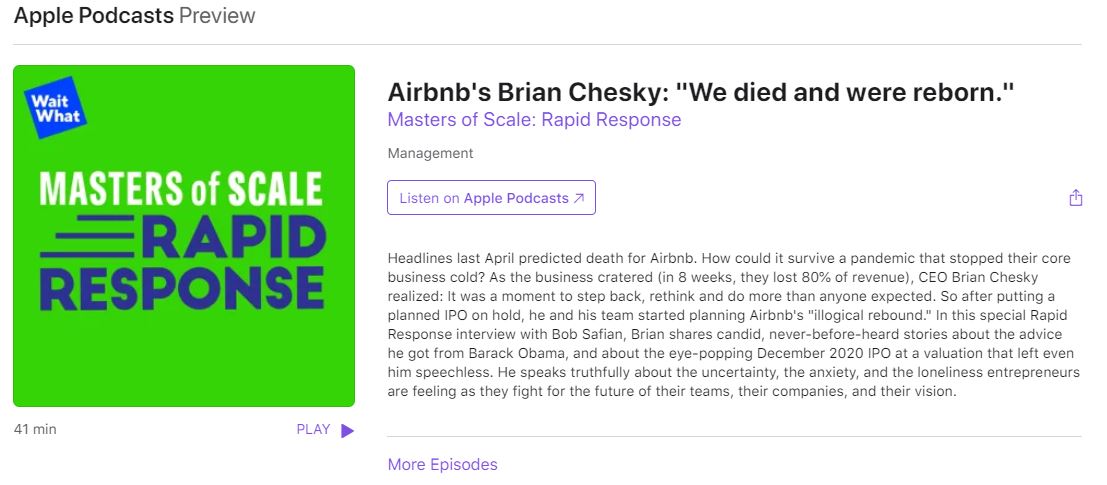 - Podcast Master of Sale Rapid Reaction – rozmowa z Brian’em Chesky z AirBnb pt. „Umarliśmy i odrodziliśmy się”.