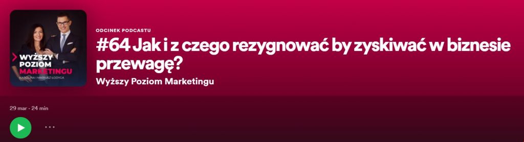 - „Jak i z czego rezygnować by zyskiwać w biznesie przewagę?” – podcast Wyższy Poziom Marketingu.