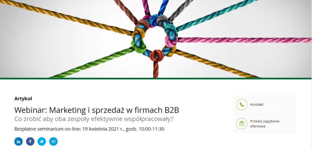 - Webinar „Marketing i sprzedaż w firmach B2B” – seminarium online odbędzie w poniedziałek (19 kwietnia) w godzinach 10:00 – 11:30. Spotkanie poprowadzą Wojciech Telenga i Igor Bielobradek. Organizator: Deloitte.