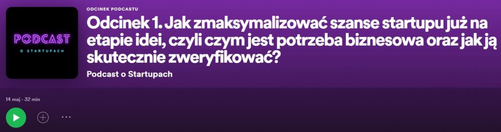 - „Jak zmaksymalizować szanse startupu już na etapie idei, czyli czym jest potrzeba biznesowa oraz jak ją skutecznie zweryfikować?” – Podcast o startupach.