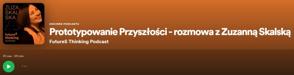 - „Prototypowanie Przyszłości – rozmowa z Zuzanną Skalską” – FutureS Thinking Podcast.