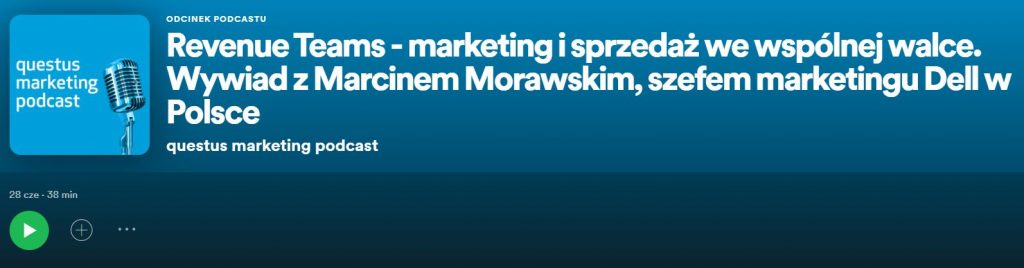 - Odcinek podcastu pt. „Revenue Teams – marketing i sprzedaż we wspólnej walce. Wywiad z Marcinem Morawskim, szefem marketingu Dell w Polsce.” – Questus Marketing Podcast.