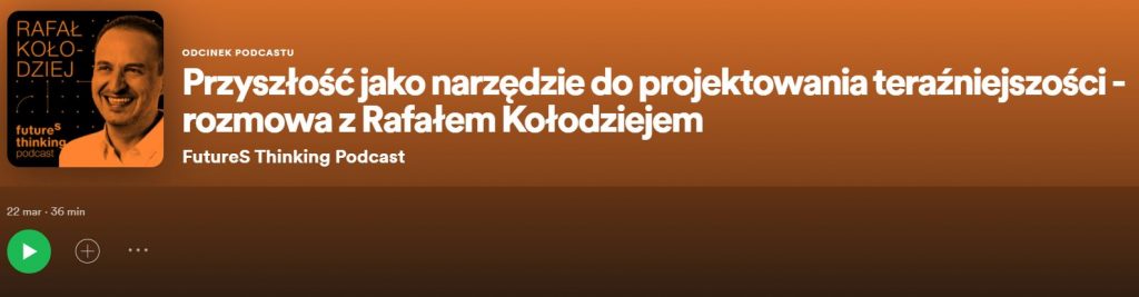 - Odcinek podcastu pt. „Przyszłość jako narzędzie do projektowania teraźniejszości – rozmowa z Rafałem Kołodziejem.” – FutureS Thinking Podcast.