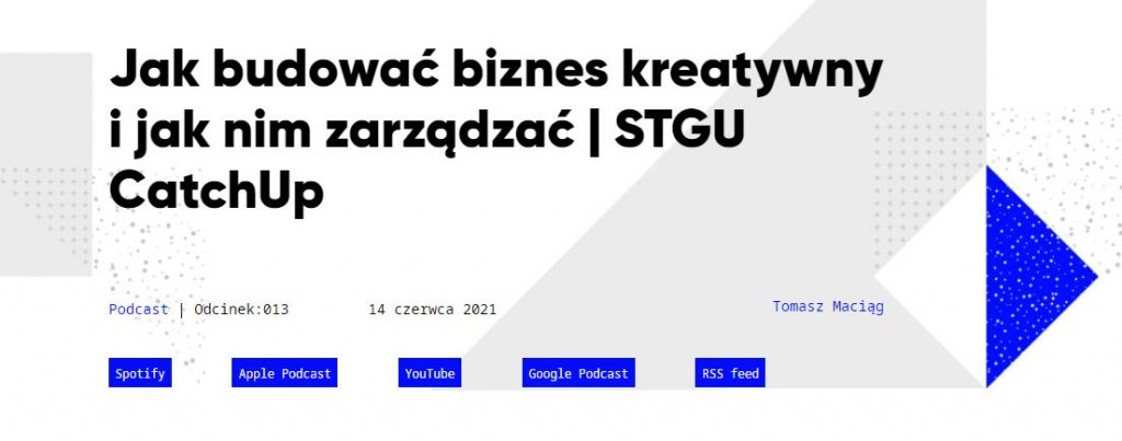 - „Jak budować biznes kreatywny i jak nim zarządzać” – podcast STGU CatchUp.
