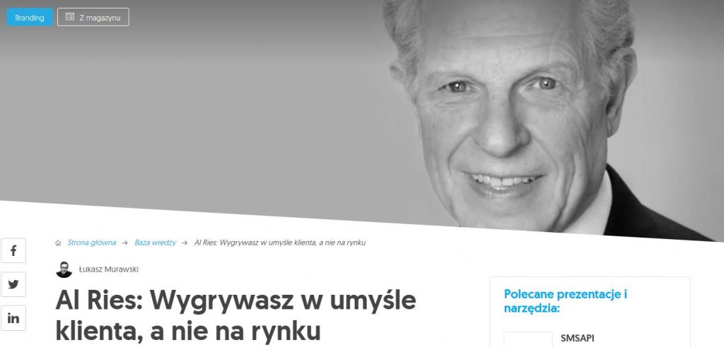 - „Al Ries: Wygrywasz w umyśle klienta, a nie na rynku” – Łukasz Murawski, Marketer+.