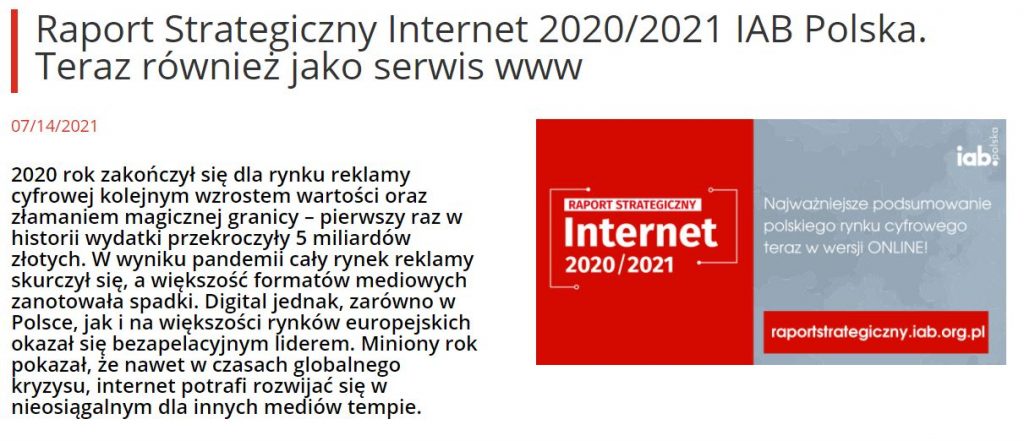 - Raport Strategiczny Internet 2020/2021 – IAB Polska.